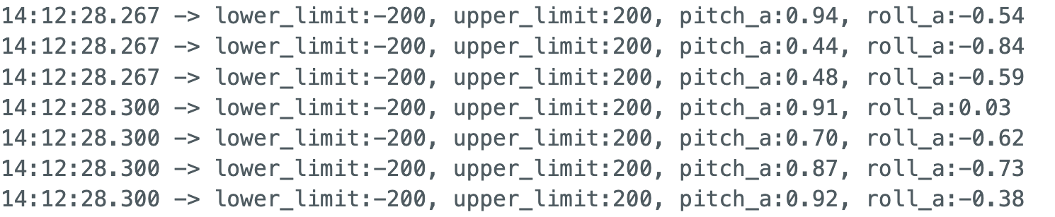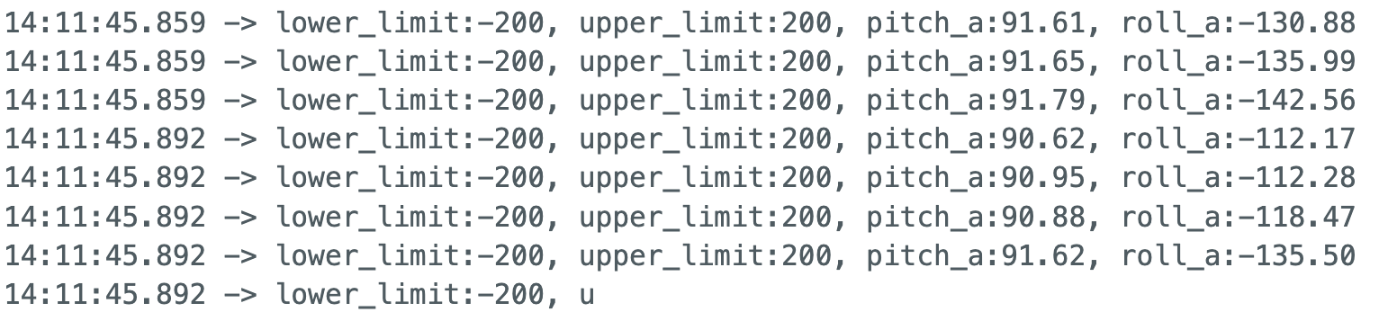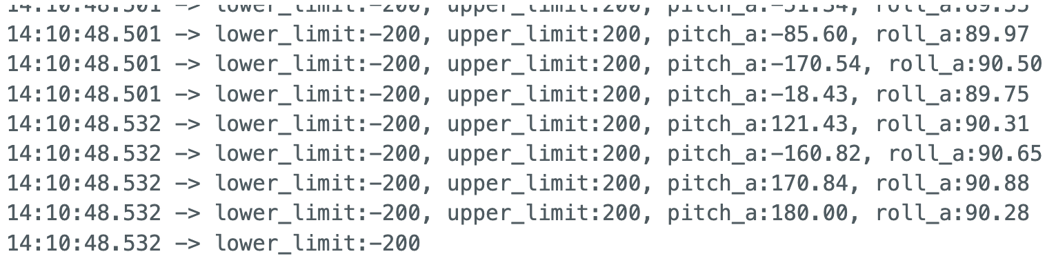 To achieve high-speed data collection, I implemented a sampling loop controlled by a start_flag. Upon receiving the GET_IMU_START command from Python, the flag is set to true, triggering the recording process. The main loop exclusively handles IMU data retrieval and storage into pre-allocated arrays, with all print statements removed to minimize latency. For every iteration, I captured 10 distinct data points: Timestamp, Accelerometer: Pitch and Roll (Raw), Low-Pass Filter (LPF): Pitch and Roll, Gyroscope: Pitch, Roll, and Yaw , Complementary Filter: Pitch and Roll.